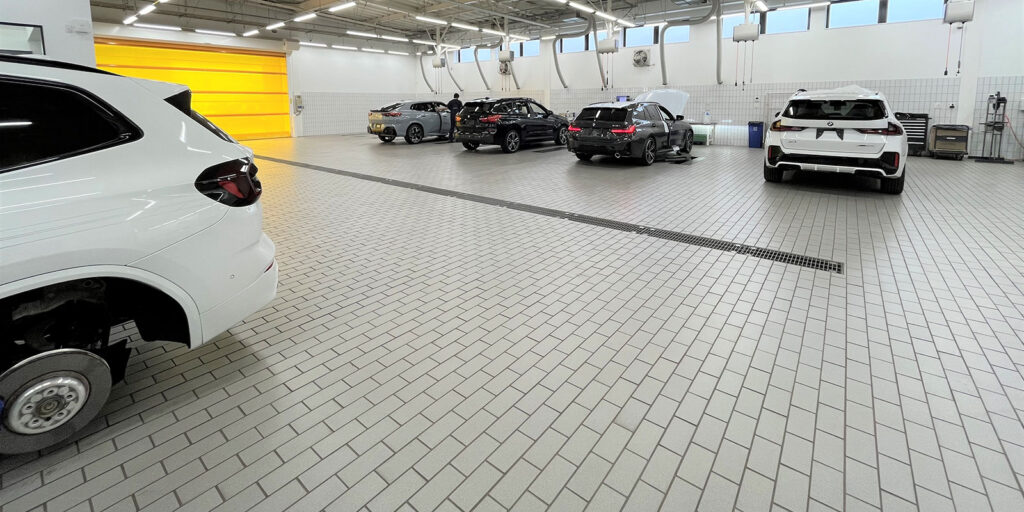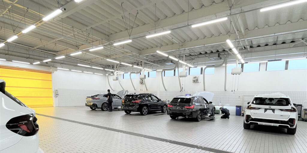 ワークショップのフロアにトレーニング施設と作業スペース8基、BMW/MINIスペシャルツールを備え、車検証の電子化に合わせた検査機器を備える。トレーニングと設備の充実により、さらに質の高いサービスが可能となる。