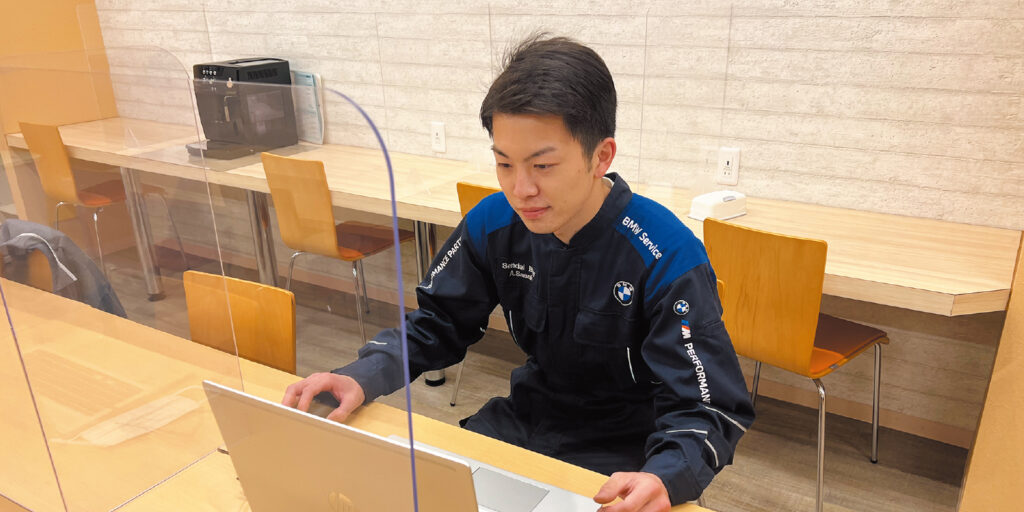 テクニシャンが自己学習する習慣を身に付け、さらなるBMW・MINIの知識の習得をさせる事を目的に「自己学習残業時間制度」を導入しております。この制度は、通常業務終了後に学習した時間を会社が業務時間として認める制度となります。